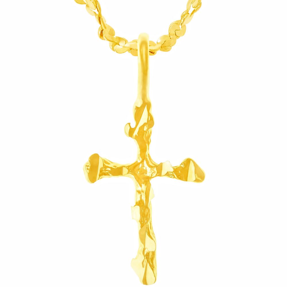 This Nugget Cross with 20” Necklace - a perfect gift for a Christian Man, Woman, Child. Comes in a pouch for easy gift giving. Made with 10 X more gold than other electroplate, it's Guaranteed for Life against damage or wear!