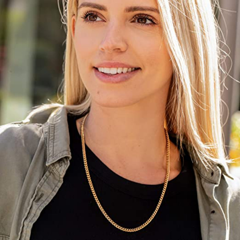 Our 4.5mm Miami Cuban Link Chain is quite striking. Made of 24k Gold over bronze, it has 20X more gold than standard electroplate. That means it’s made to last and gives you the look and feel of solid gold at a fraction of the price. Should it ever tarnish, take advantage of our Selecthey Replacement Guarantee and receive a new one free!